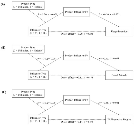 To explain this, we integrate our mind perception framework with Expectancy Violation Theory (EVT) [52]. EVT provides a robust framework for examining consumer responses when an endorsement fails to meet expectations [52]. The magnitude of negative reactions is proportional to both the severity of the violation and the importance of the expectation. High influencer–product fit acts as a powerful expectation-setting mechanism, fostering trust and credibility. When such endorsements are revealed as deceptive, the resulting violation is especially jarring and triggers a stronger backlash. This amplified negative reaction should manifest across a range of critical consumer responses. Consumers should form more negative brand attitudes and show lower purchase intentions [53].