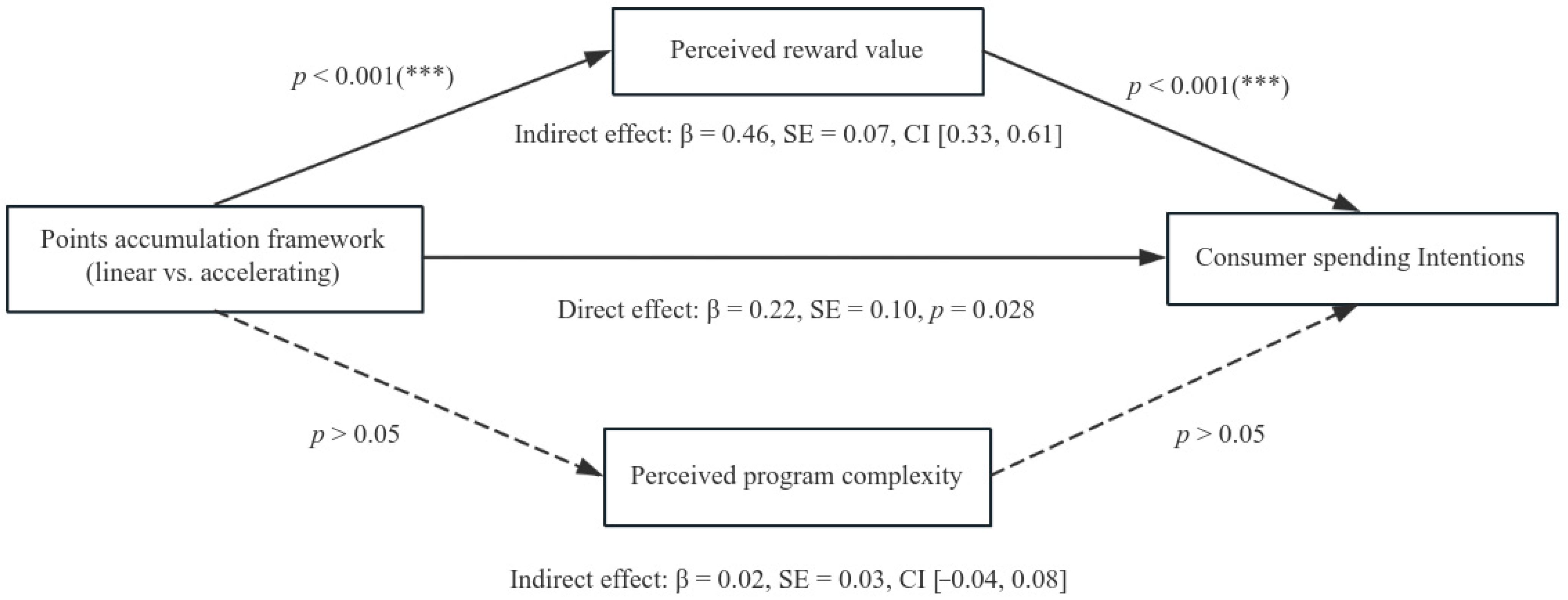 | Study 2 | 400 (Prolific) | 2 (Linear vs. Accelerating Points Framework) | Explore the mediating role of perceived reward value in the relationship between points framework and spending intentions (H2) | Accelerating frameworks increased perceived reward value, which in turn enhanced spending intentions. |