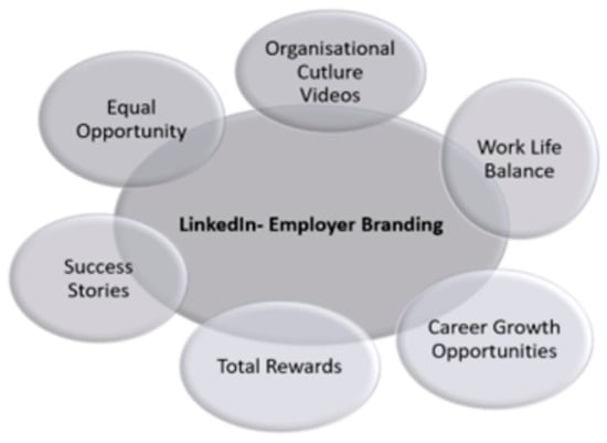 LinkedIn is a critical platform for organisations, especially the hospitality industry, seeking to build a robust employer brand. Employer branding pertains to an organisation’s image and its capability to draw, sustain and engage a high-quality workforce []. As highlighted earlier and illustrated [], employer branding embodies the notion utilised to portray an institution’s standing as an employer and the potential benefits employees may accrue from it. For organisations to distinguish themselves from the competition, it becomes crucial that they have the capacity to attract and retain the talents they seek [,]. In the contemporary business landscape, organisations effectively merge conventional hiring techniques with social media platforms to publicise their employer brand. Enhancing the employer brand can bolster employee retention, engagement, and satisfaction. By externally advocating its brand, the organisation augments its attractiveness to prospective employees [].