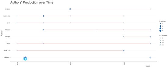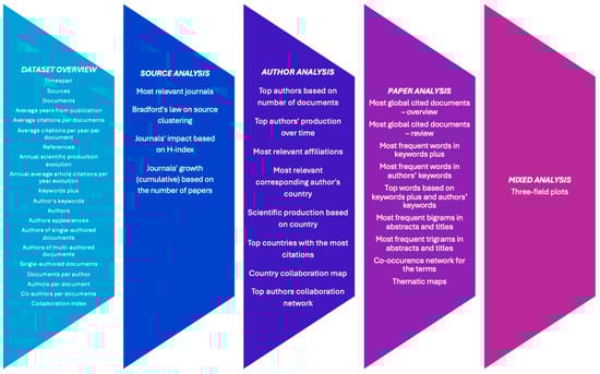 The authors opted to work with Biblioshiny, an R-tool used for generating interactive graphs and figures, helpful for observing the hidden trends, details, lacks, and possible improvements in the domain. This decision was followed by various authors in similar bibliometric-oriented studies [26,40,56,72,73,74,75]. Furthermore, for some of the analyses, a comparative examination was also included to uncover possible differences or similarities between the results generated by other bibliometric software (VOSviewer, CiteSpace).