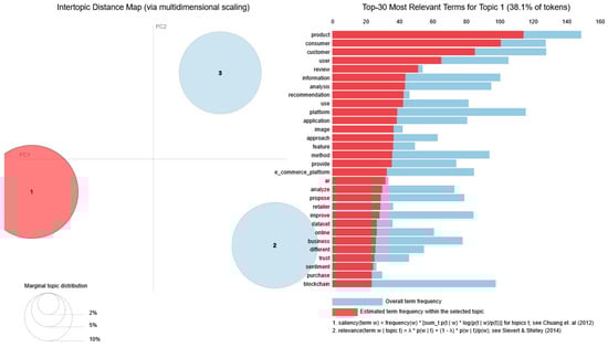 Unlike previous bibliometric studies highlighted in Table 1, which provided a bibliometric approach to either e-commerce in general or to various aspects related to e-commerce, relying mostly on general issues discussed in bibliometric analysis such as the evolution of the number of published papers in time, the citations analysis, co-words analyses, or co-authorship analyses, our study integrates classical bibliometric mapping with two complementary topic modeling approaches—Latent Dirichlet Allocation (LDA) and BERTopic. Through this dual approach, which supplements the thematic maps provided by the bibliometric analysis, the thematic structures identified through the analysis are further validated. By comparing the results of the three analyses conducted in this paper, BERTopic, LDA, and thematic map, the connection between the results can easily be observed, highlighting more the research directions considered by the authors in this field.