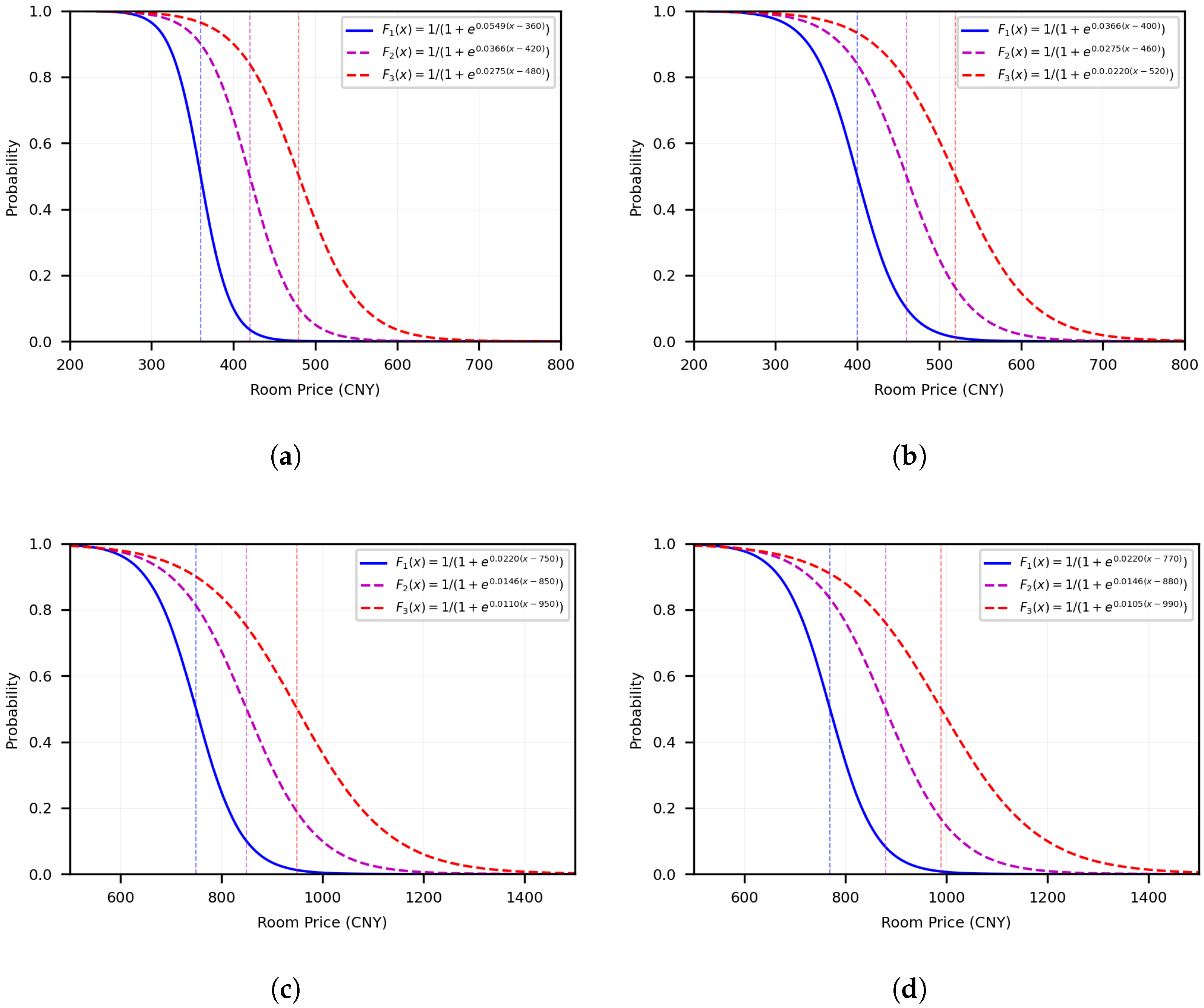 - Zhu, F.; Xiao, W.; Yu, Y.; Wang, Z.; Chen, Z.; Lu, Q.; Liu, Z.; Wu, M.; Ni, S. Modeling price elasticity for occupancy prediction in hotel dynamic pricing. In Proceedings of the CIKM’22: Proceedings of the 31st ACM International Conference on Information and Knowledge Managemen, Atlanta, GA, USA, 17–21 October 2022; pp. 4742–4746. [CrossRef]