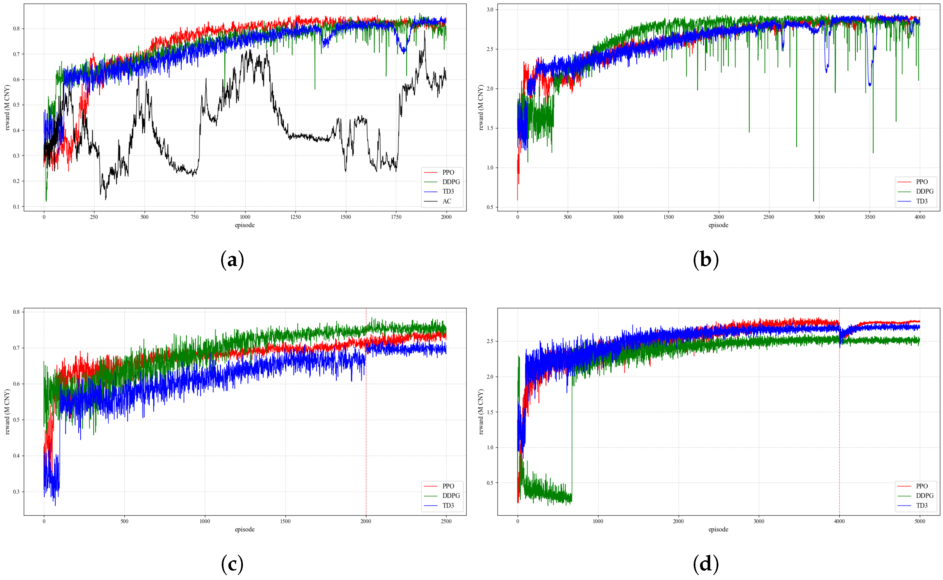 - Lillicrap, T.P.; Hunt, J.J.; Pritzel, A.; Heess, N. Continuous control with deep reinforcement learning. arXiv 2015. [Google Scholar] [CrossRef]