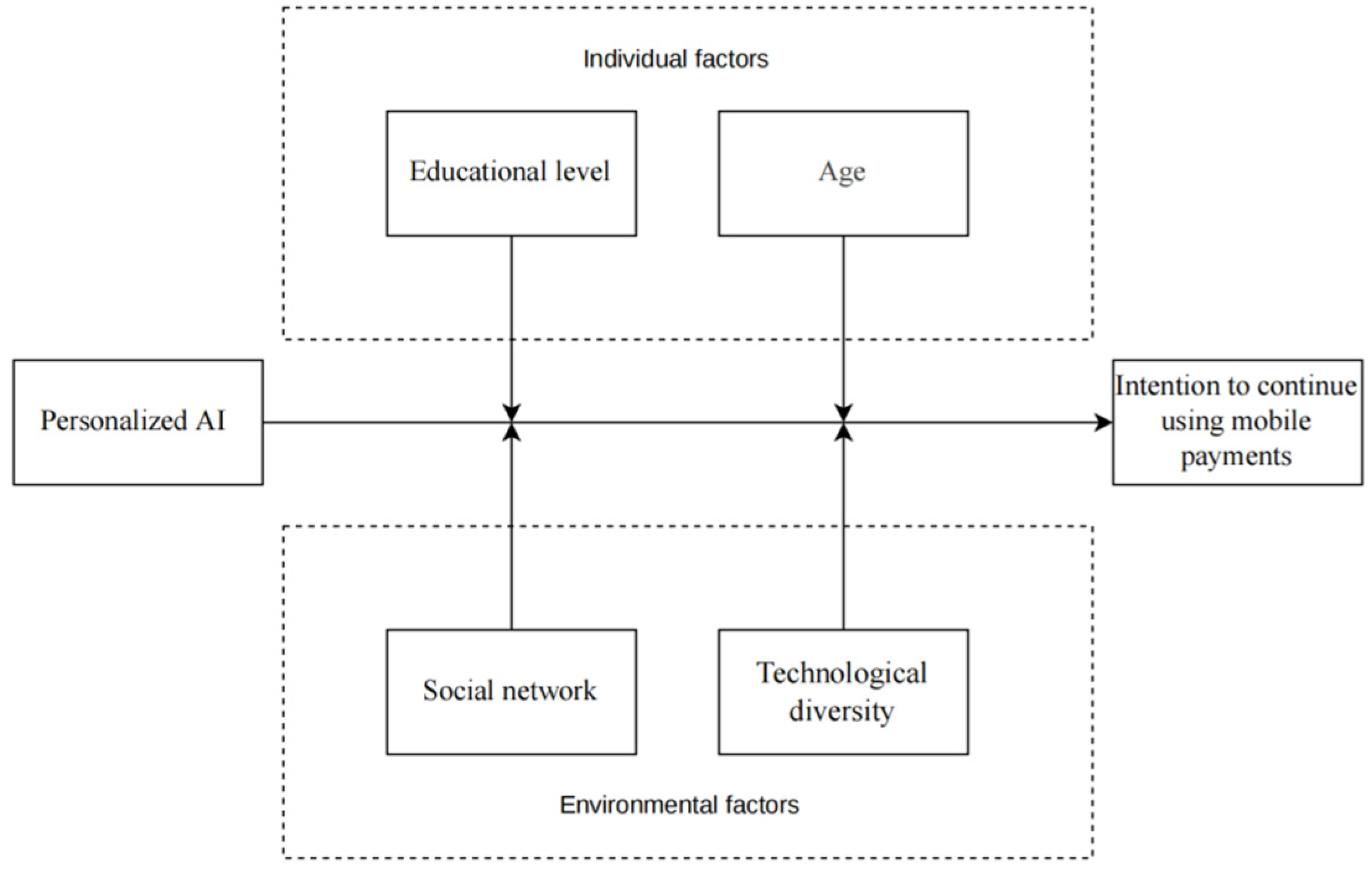 Liang, N.; Lee, E.T. The Influence of Personalized AI on Users’ Intention to Continue Using Mobile Payments: A Contingency Perspective. J. Theor. Appl. Electron. Commer. Res. 2025, 20, 346. https://doi.org/10.3390/jtaer20040346