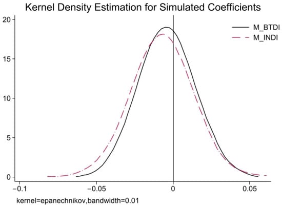 Specifically, while keeping the control variables unchanged, we randomly reassign industry peers’ digital innovation indicators within the same firm and then re-estimate the model on the simulated samples. This process is repeated 1000 times. If the simulated coefficients of M_BTDI and M_INDI remain significantly positive, it would suggest that the baseline regression omitted important variables. Otherwise, it would indicate that convergence of corporate digital innovation truly exists at the industry level.