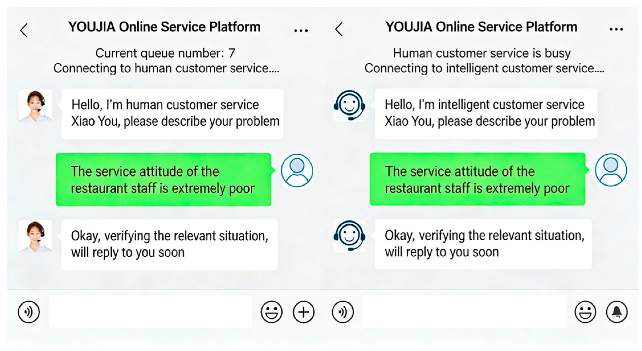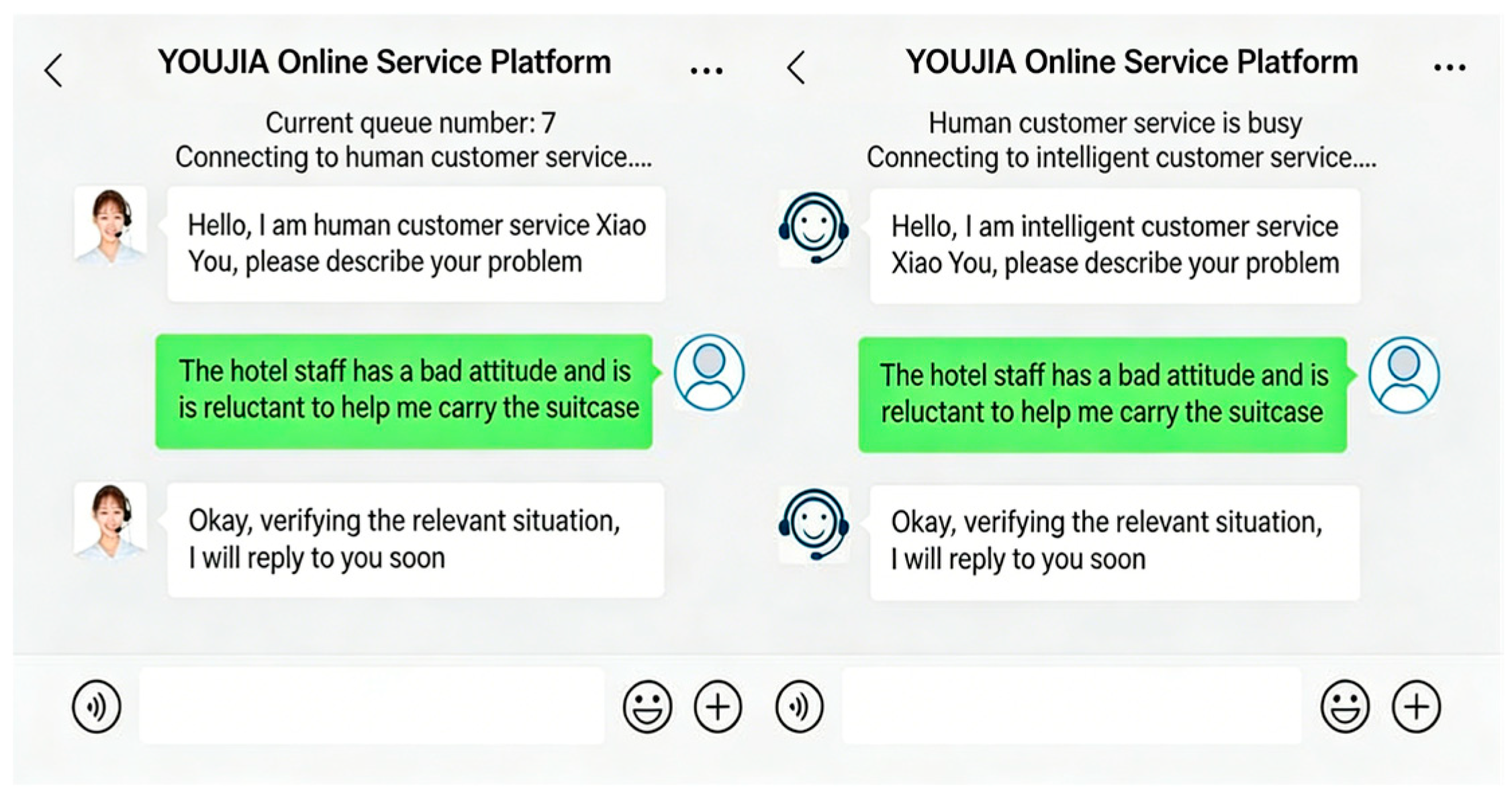 - Xie, C.; Zhu, J.; Xie, Y.; Liang, C. Apologizing with a smile or crying face? Exploring the impact of emoji types on customer forgiveness within chatbots service recovery. Electron. Commer. Res. Appl. 2025, 70, 101488. [Google Scholar] [CrossRef]