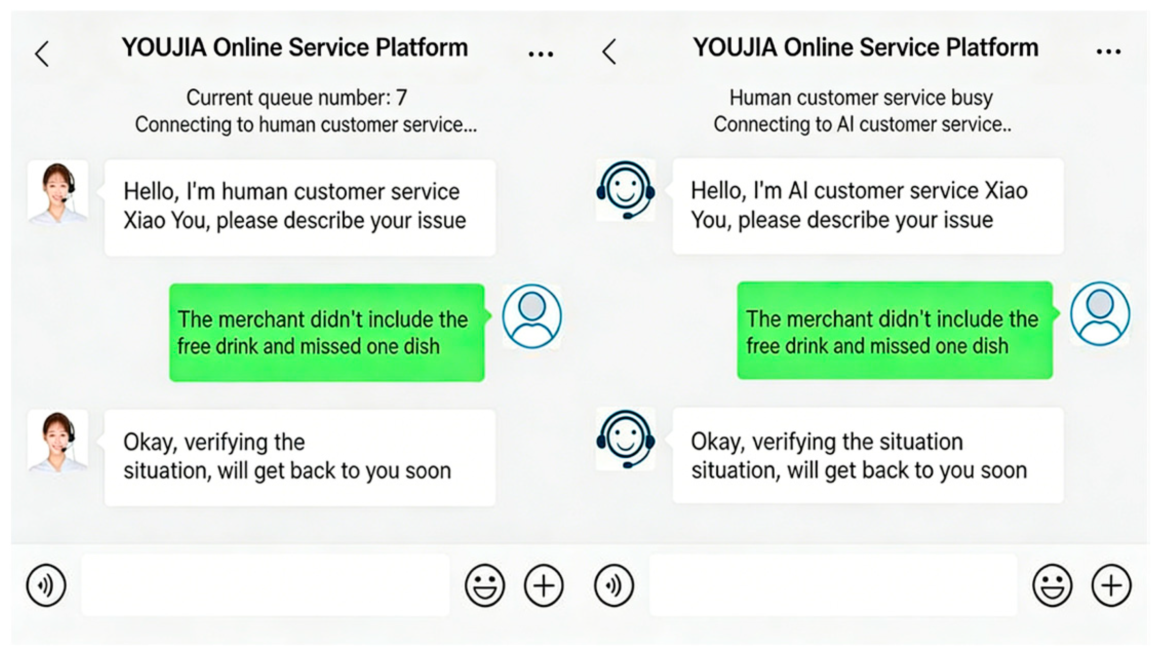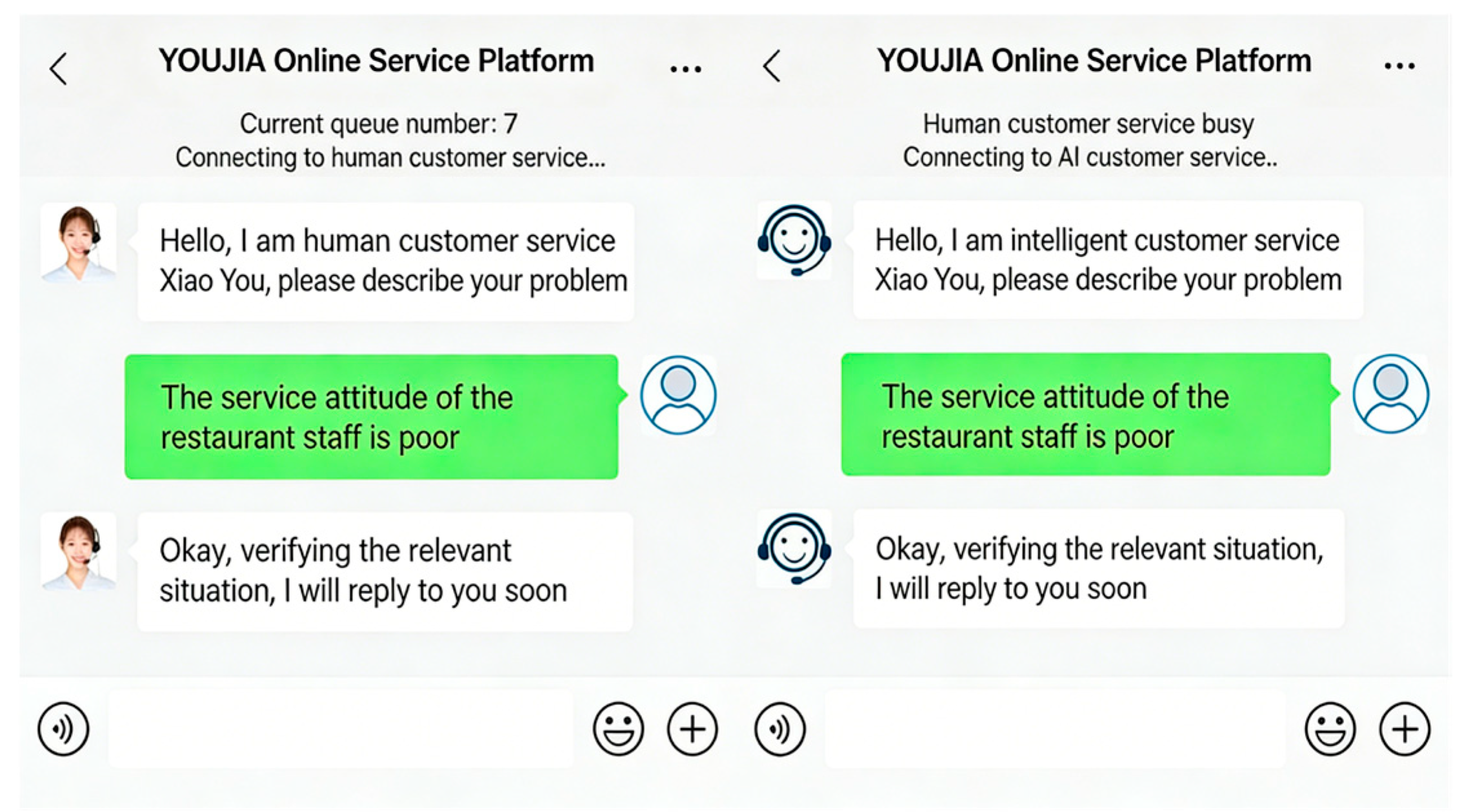 - Cao, Z.; Yu, K. To facial or not to facial? From emoji to empathy in shaping customer satisfaction with chatbot service recovery. J. Retail. Consum. Serv. 2026, 89, 104633. [Google Scholar] [CrossRef]