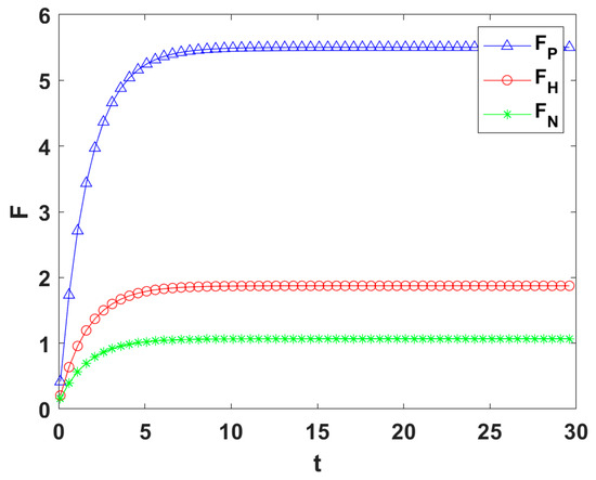 Similarly, as government policies and consumer preferences evolve, the greenness of fresh products has become a critical factor influencing sales. Therefore, we assume that the dynamic change process of the greenness of fresh products is expressed by the following formulation, with the initial value of the greenness being .