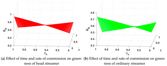 Similarly, is the profit value function of the Head streamer, and denotes the partial derivative of the value function with respect to , denotes the partial derivative of the value function with respect to . Substitute in (A17) and get the first derivative of . The supplier’s optimal greenness improvement effort is