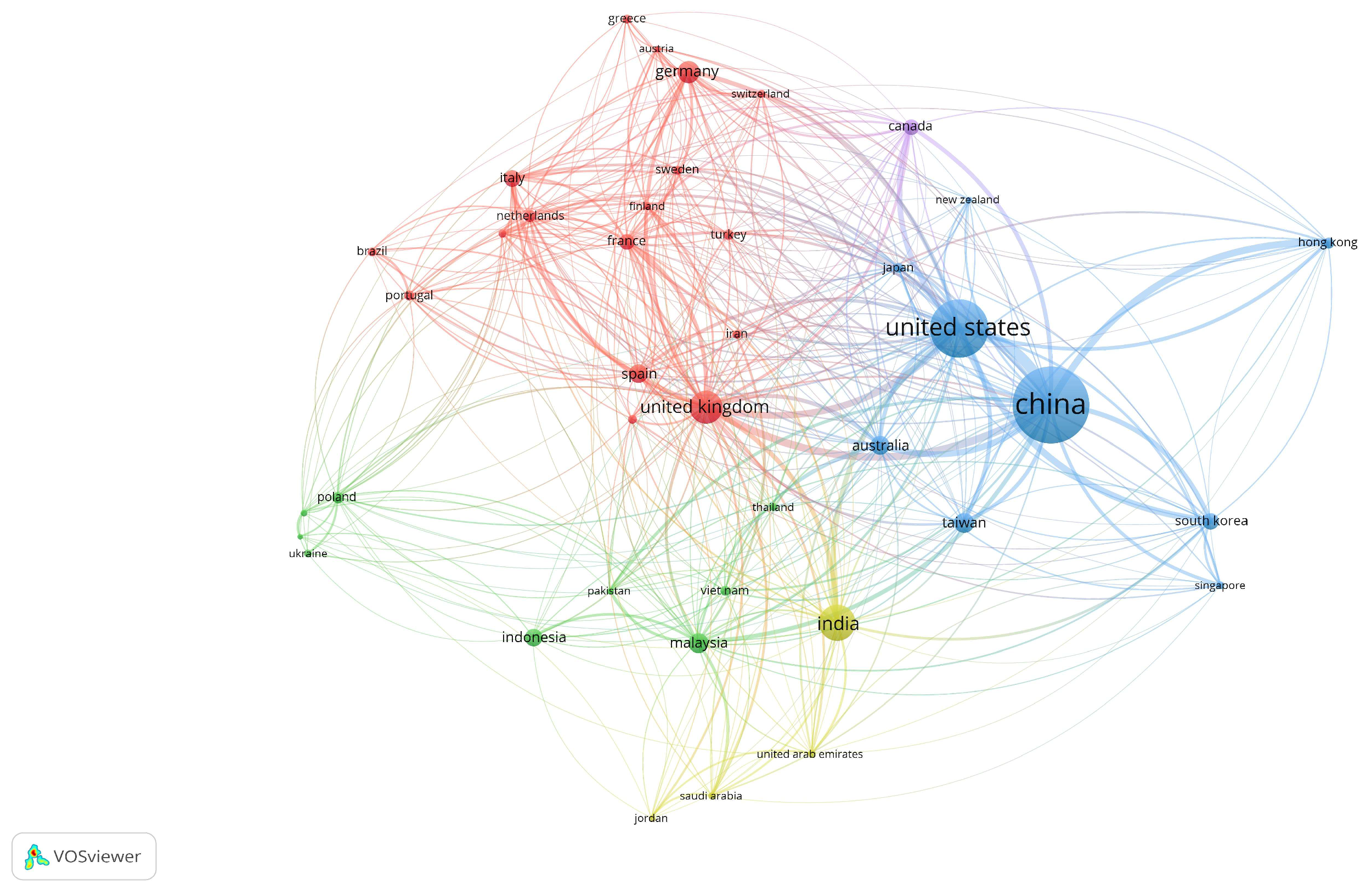Figure 4 presents the countries’ co-authorship network generated by VOSviewer 1.6.20.