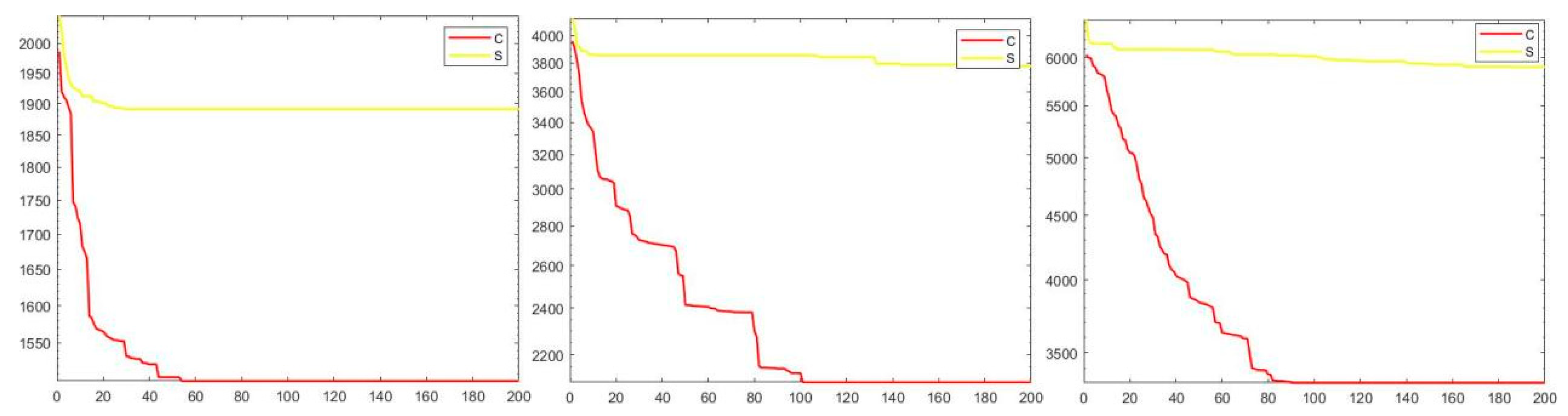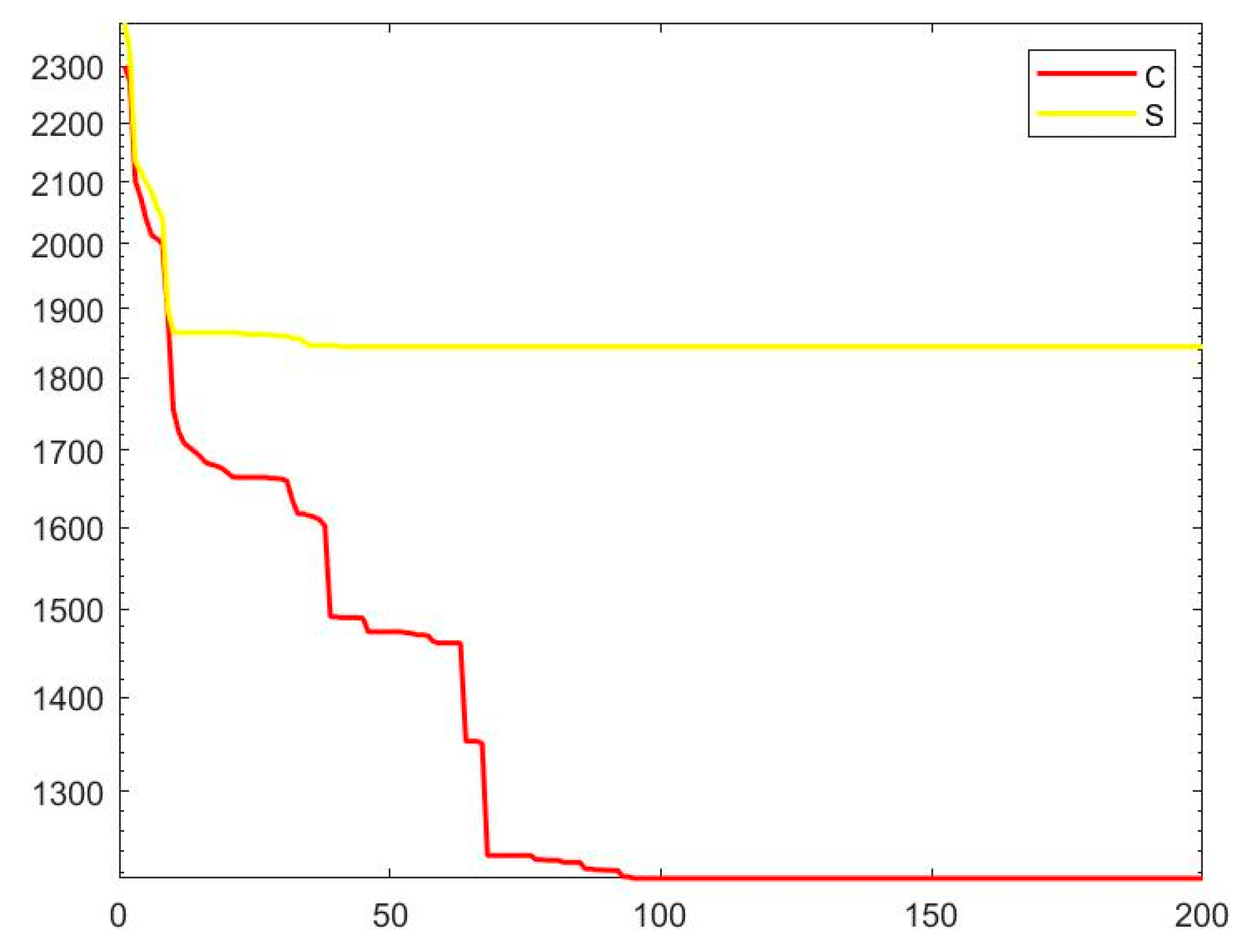 The remaining part of this section presents experiments conducted using the S-WOA and other heuristic algorithms at different scales, based on the parameters mentioned above. All algorithms in this paper were written in MATLAB R2020b, and all experiments were tested on a machine with 8 GB RAM and an Intel Core i5-8265U CPU, 1.80 GHz processor.