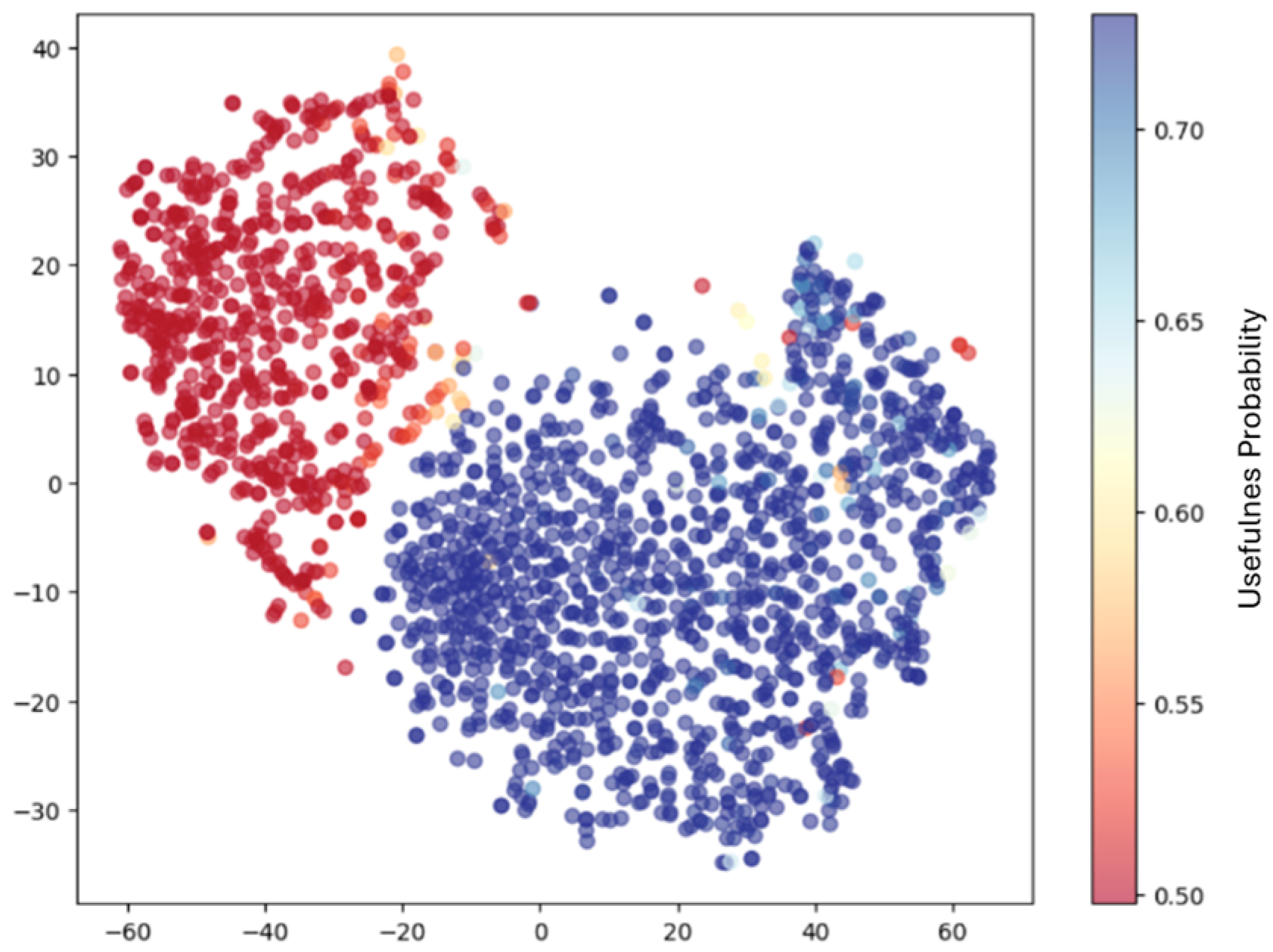 Figure 6. t-SNE visualization of the concat-based fusion model predictions.