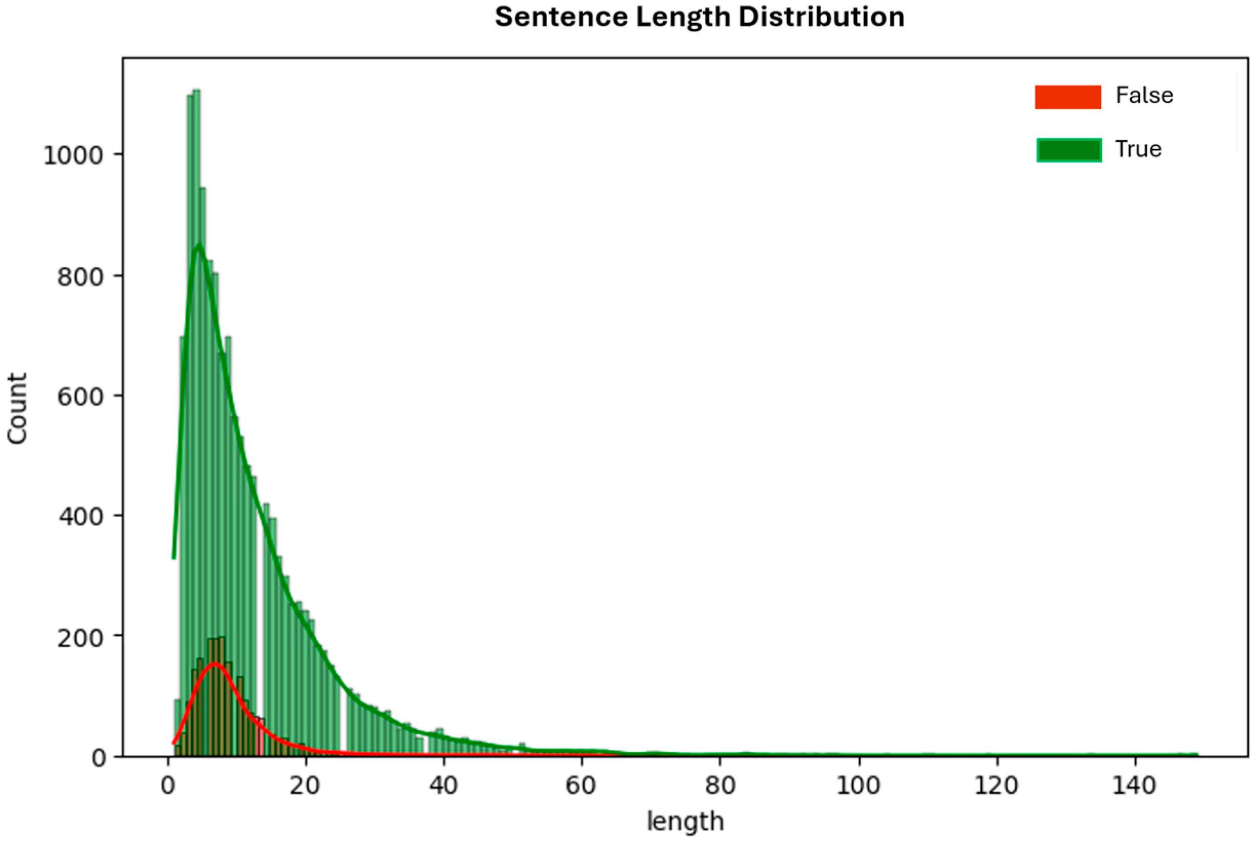 Figure 8. Sentence length distribution of correctly and incorrectly classified reviews.