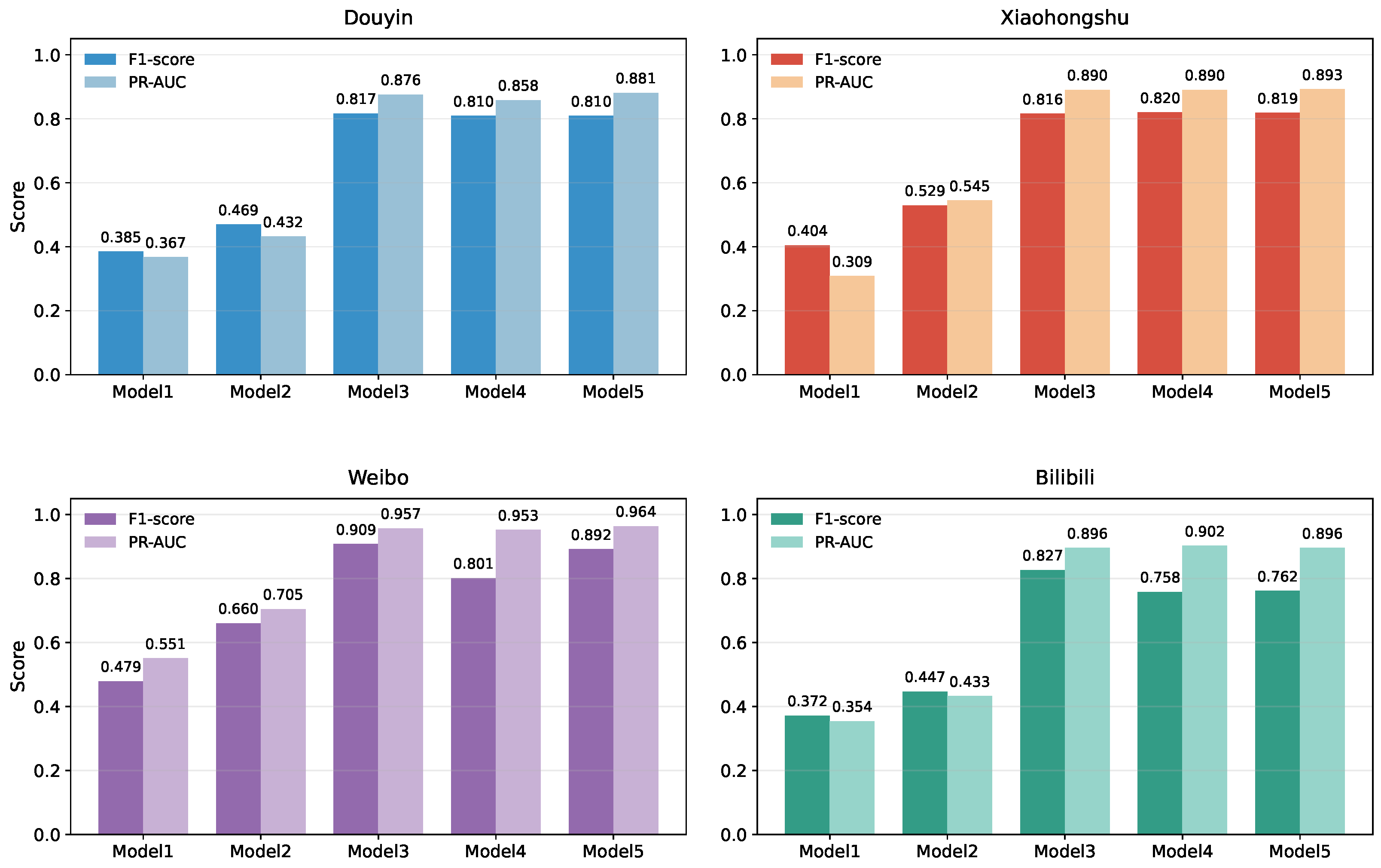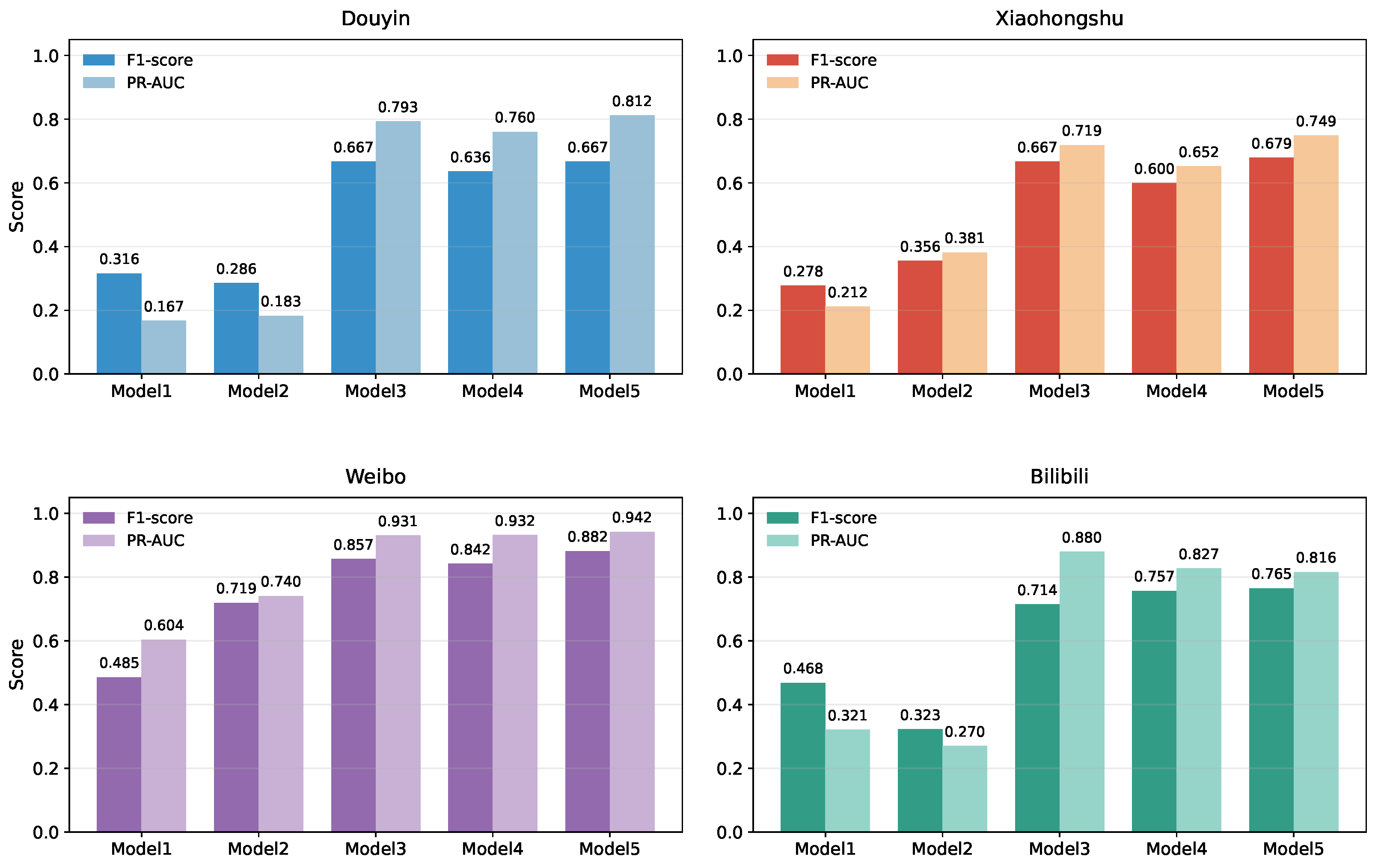 | Model | Douyin | Xiaohongshu | Bilibili | ||||||||||||||||