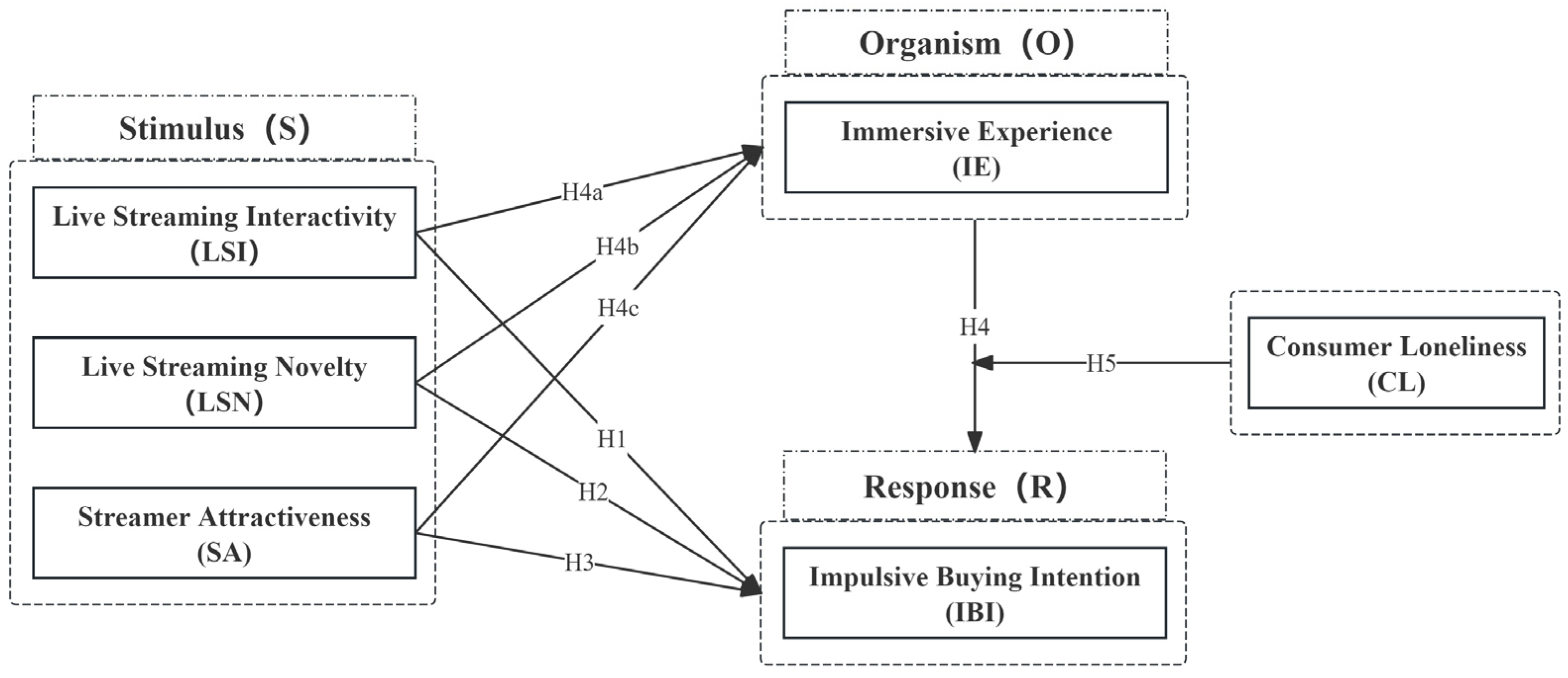 - Li, M.; Wang, Q.; Cao, Y. Understanding Consumer Online Impulse Buying in Live Streaming E-Commerce: A Stimulus-Organism-Response Framework. Int. J. Environ. Res. Public Health 2022, 19, 4378. [Google Scholar] [CrossRef]