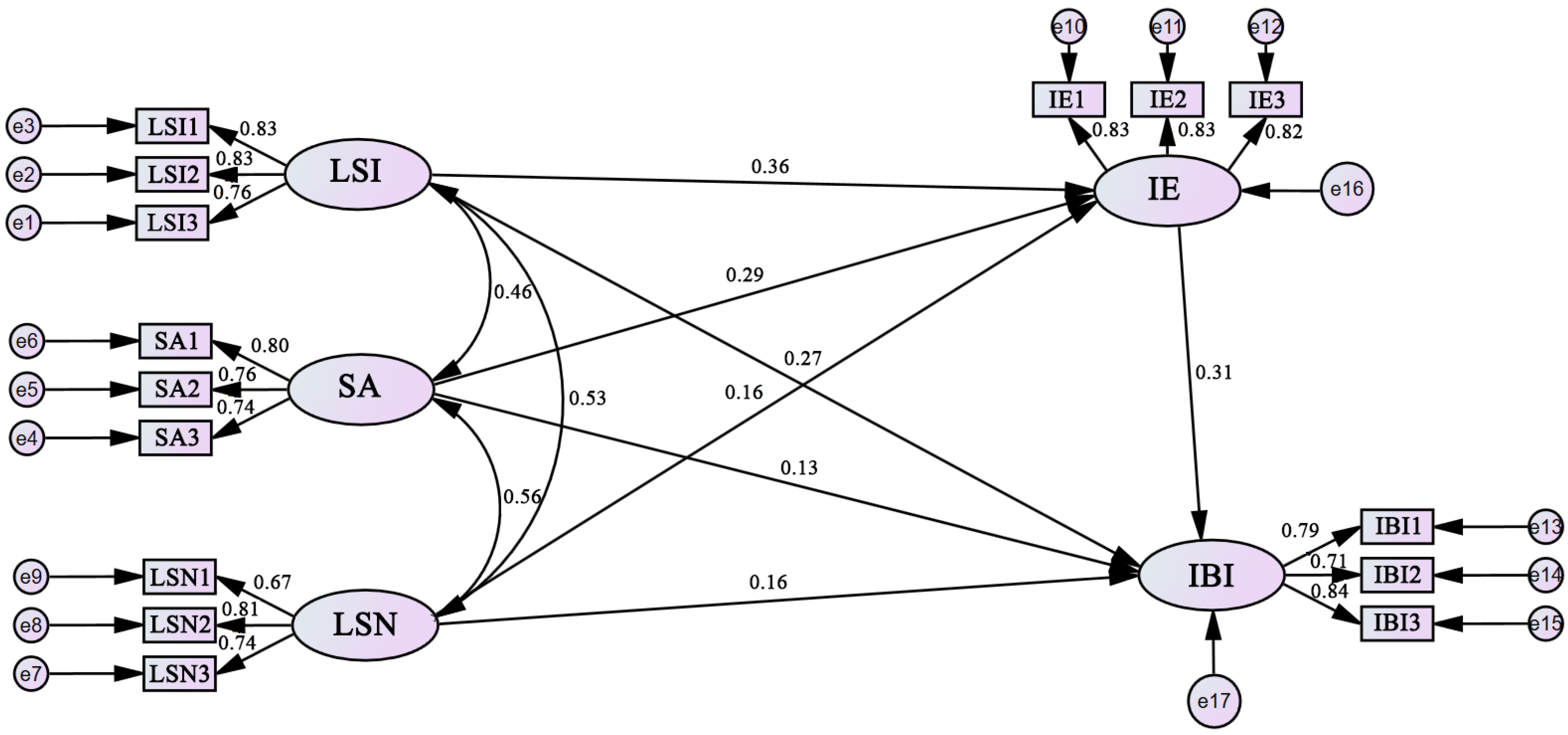 | H3 | IBI | <--- | SA | 0.153 | 0.071 | 2.155 | 0.031 | Established |