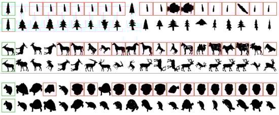 - Latecki, L.J.; Lakmper, R.; Eckhardt, U. Shape Descriptors for Non-rigid Shapes with a Single Closed Contour. In Proceedings of the IEEE Conference on Computer Vision and Pattern Recognition. CVPR 2000 (Cat. No.PR00662), Hilton Head, SC, USA, 15 June 2000; pp. 424–429. [Google Scholar]