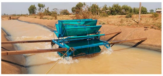 Water turbine (approximately 1.4 kW of power output) on the Koga canal located in the region surrounding the study domain.