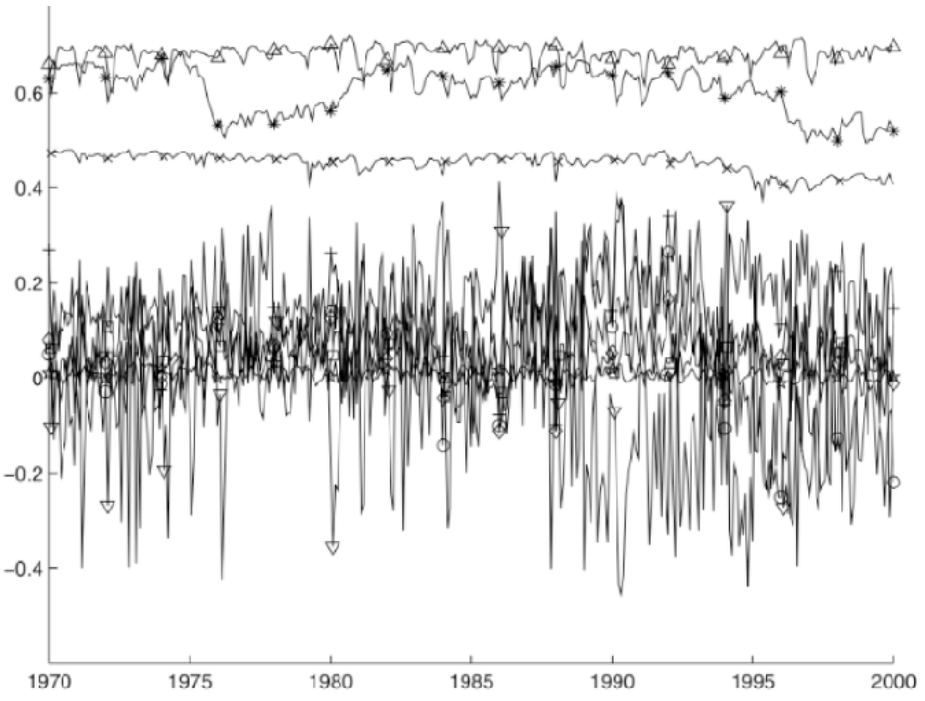Symbols in Figure 1 designate specific models, whose identities are not important here. What is important is that all of the traditional models produce highly variable timeseries for
