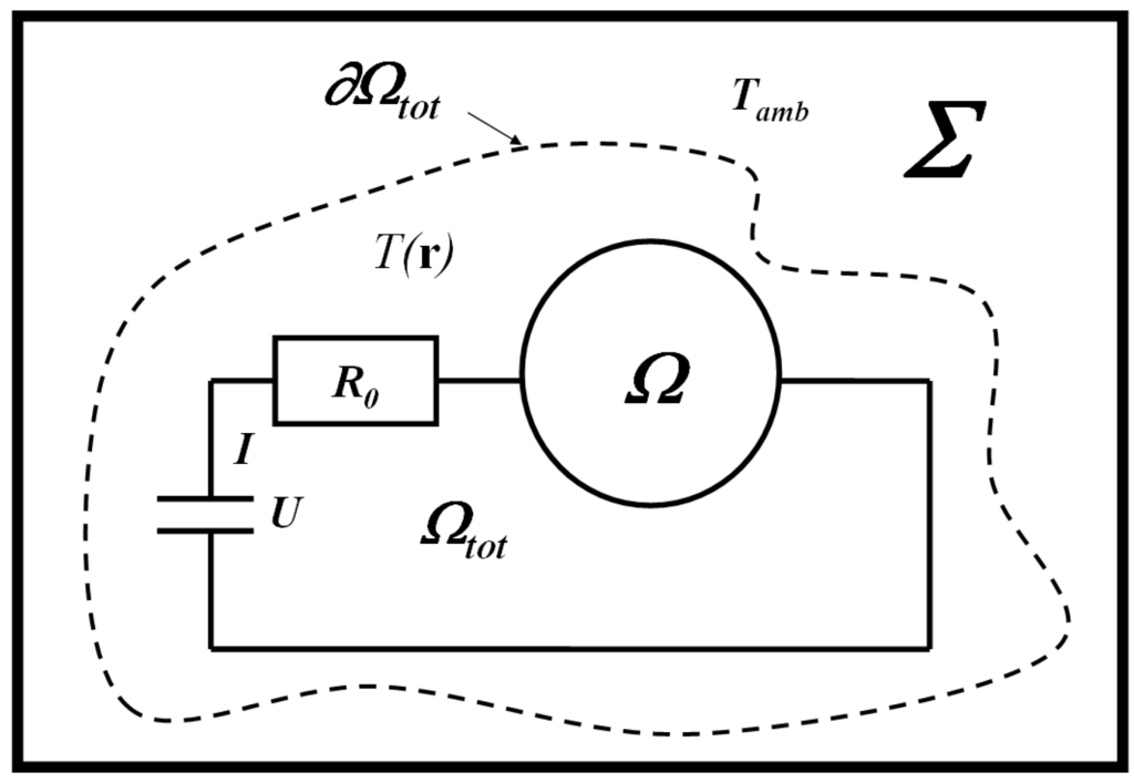 For simplicity, we suppose that the “device” Ω is only electrically and thermally coupled to its environment, but does not exchange mass or momentum. This device is described by a phenomenological model