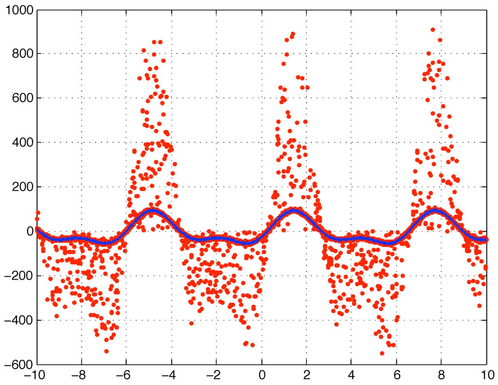 A different perspective to the problem can be found in the rich statistics literature on the subject. A milestone reference is the book by Peter J. Huber [2] describing (among the rest) the use of M-estimators (where the M is reminiscent of Maximum Likelihood). M-estimators can be thought of as generalizations of the LS estimator (3) where the square of residuals is replaced by an alternative penalty function with a unique zero in the origin and such that , namely