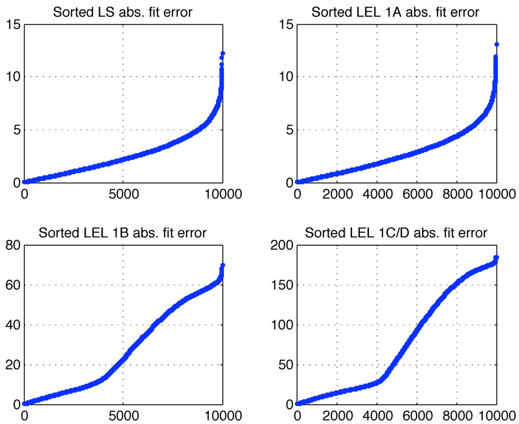 Case 1 sorted LS and LEL fitting errors in absolute value.