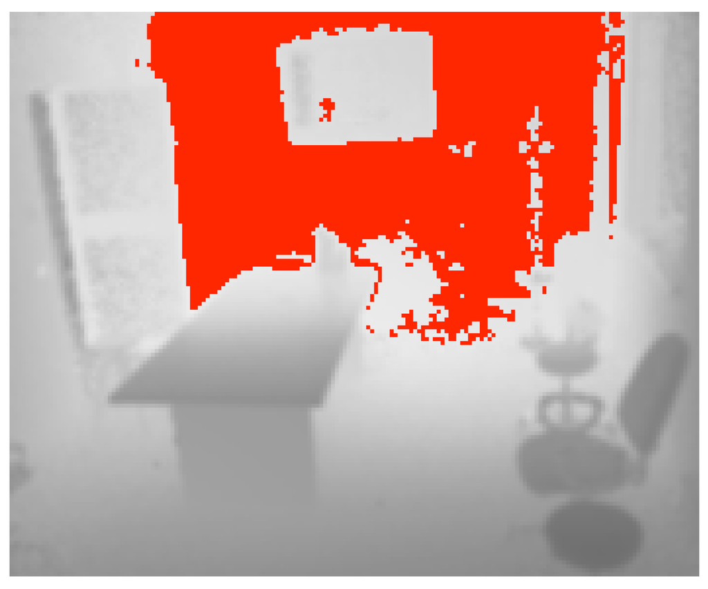 One of the significant properties of the proposed method is relative to the low computational effort required to compute the parameter estimate; such property may be exploited in online applications. As an example, consider sensor signal processing in robotics or automatic controls. Assume that range or imaging data are acquired by a robot or a vehicle and that a set of features needs to be extracted from the data online. Typical examples may include sonar data acquired by marine or areal vehicles or images acquired by any moving robot equipped with a computer vision system. If a reliable estimate of the features is known at time k, it is often a reasonable assumption that they will be “approximately close” to at time . In this case, the local nature of the LEL estimator may not be a serious issue, in the sense that at time one may estimate through the proposed LEL method using as the initialization value. Notice that the standard implementation of many alternative robust methods as RANSAC, the Hough transform, LMS or M-estimators would most probably be much more demanding from a computational point of view. Ongoing work is in progress to test the use of the LEL approach with experimental data, in particular for the identification of planes from data acquired by a robot using a range camera (Figure (10)).