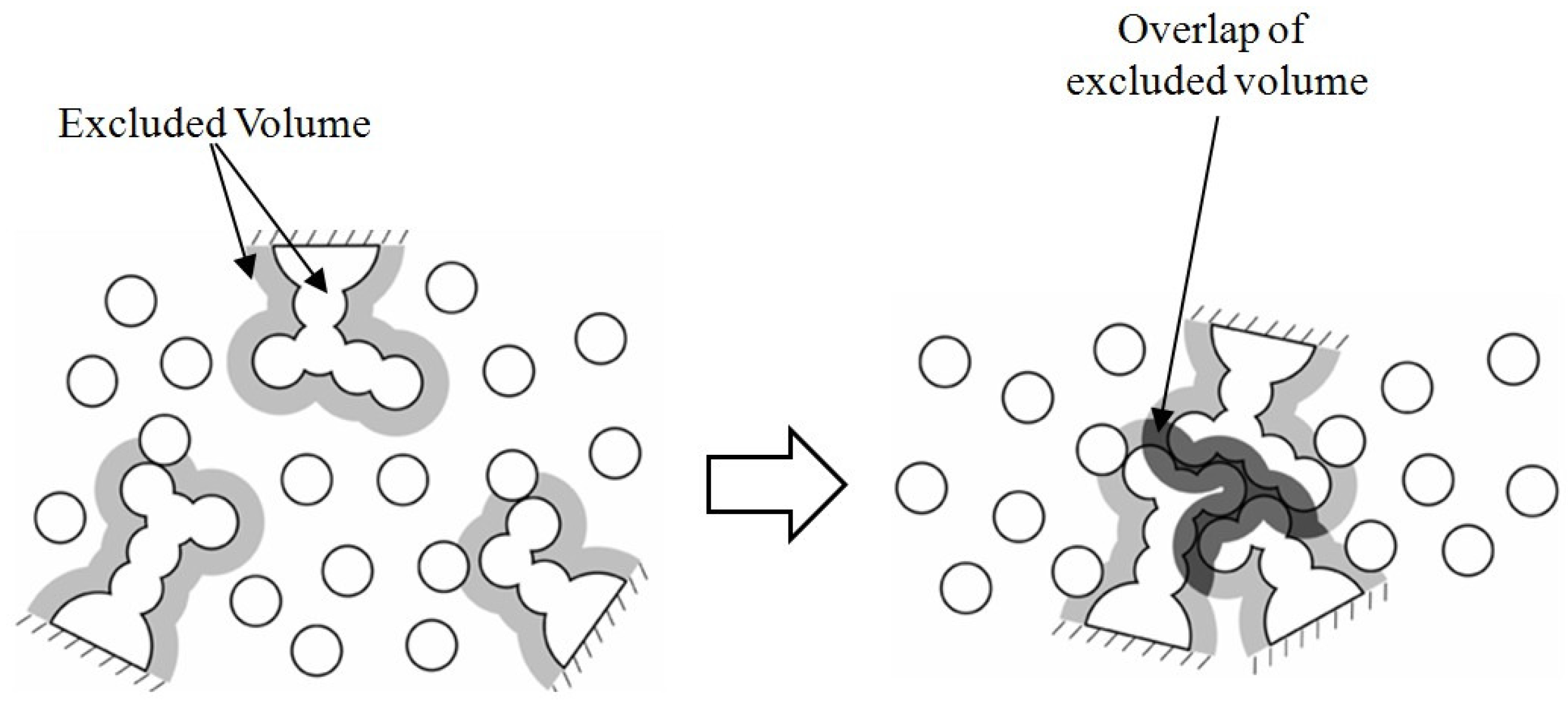 32]. We first note that the presence of proteins generate an excluded volume (EV) which the centers of water molecules cannot enter [