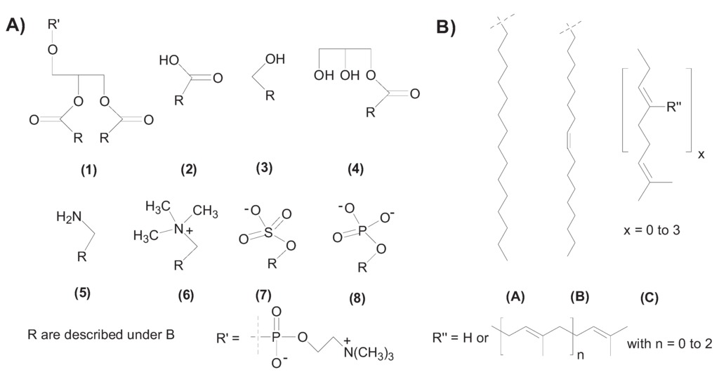 | Molecules derivatized with hydrophobic tails** | X | ||