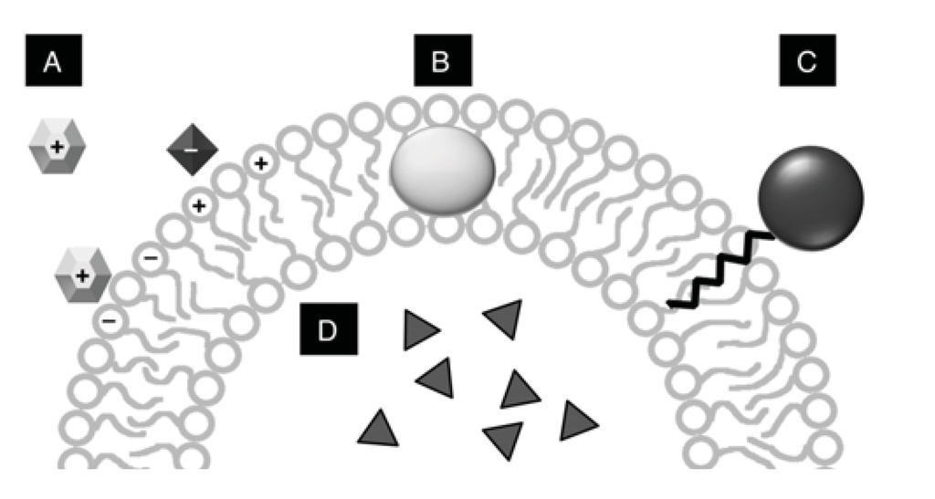 - The composition of the membrane considering the head and tail group type and mixtures of co-surfactants will interact with the environment and solutes in species-specific manner (e.g., anionic vesicles are sensitive to cations).