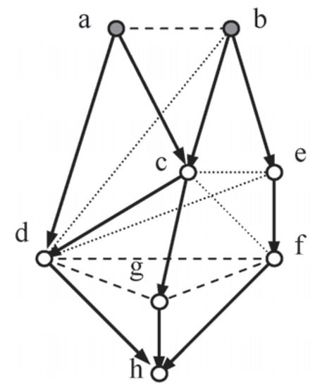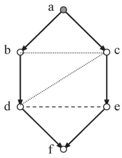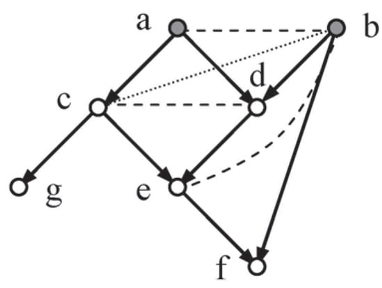 Sets of vertices U and V are said to be d-separated by the set W if every path between U and V is blocked by W. Furthermore, a theorem has been proved which asserts that, if all the paths are blocked, then the variables in U are independent of those in V given the outcomes for those in W []. The converse is also true, and furthermore a DAG, together with the explicit constraints and the definition of d-Separation, i.e., d-sep1, d-sep2 and d-sep3, is sufficient to define a causal network and to identify all the implicit independencies []. Much of the work on d-Separation was developed by J. Pearl and his associates.