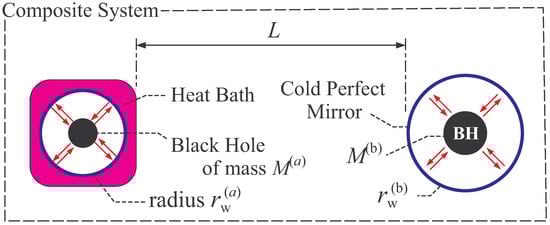 Next, we make comments on the composition of some systems in black hole thermodynamics. Figure 5 shows an example of composition, in which subsystems are two thermal systems of black holes. (The “wall” of each subsystem, which encloses a black hole, can be either heat bath or cold perfect mirror.) These two subsystems are individually in thermal equilibrium states by equilibrating each black hole with the heat bath or cold perfect mirror.