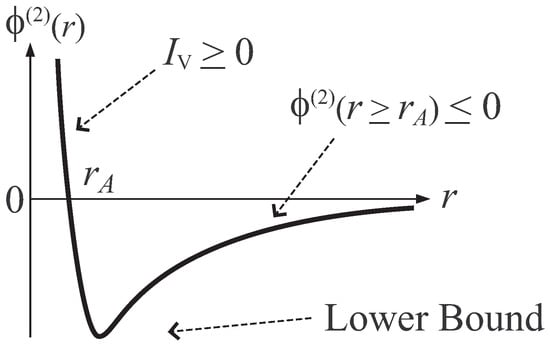 The above properties of state variables are required as basic principles in axiomatic thermodynamics [,]. Then, let us note an important property of state variables derived from the basic principles. It is the convexity of various state variables. Mathematically, a function is convex, if , where and . And, is concave, if is convex. (When is second differentiable, is convex if .) In ordinary thermodynamics, the convexity of state variables is related with the stability of thermal equilibrium state. For example, the free energy is concave about variables , where T is temperature, V is volume, and N is number of constituent particles. This yields, for example, the positive heat capacity, . Therefore, the concavity of F implies thermodynamic stability of the system under consideration.
