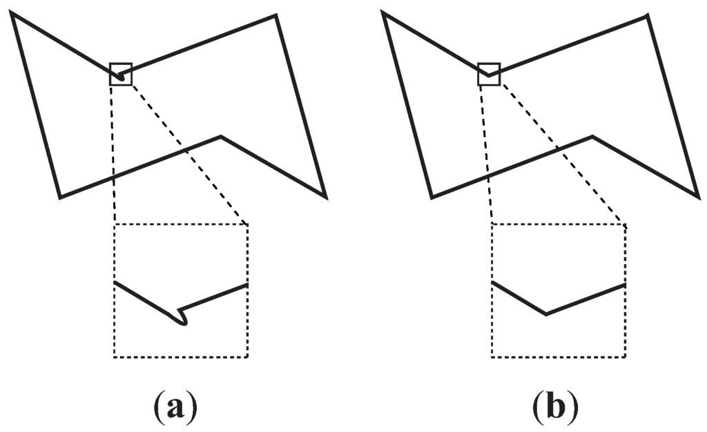 For example, when a very small interval is used to calculate the index of the shape described in Figure 3, the proposed index increases upon changing the microscopic curvature in Figure 3a. Although the shape in Figure 3b has the same macroscopic features, the index greatly differs. Therefore, the points should be set at adequate intervals after considering the influence of noise. Incidentally, we have conducted a study on the removal of this influence [19].