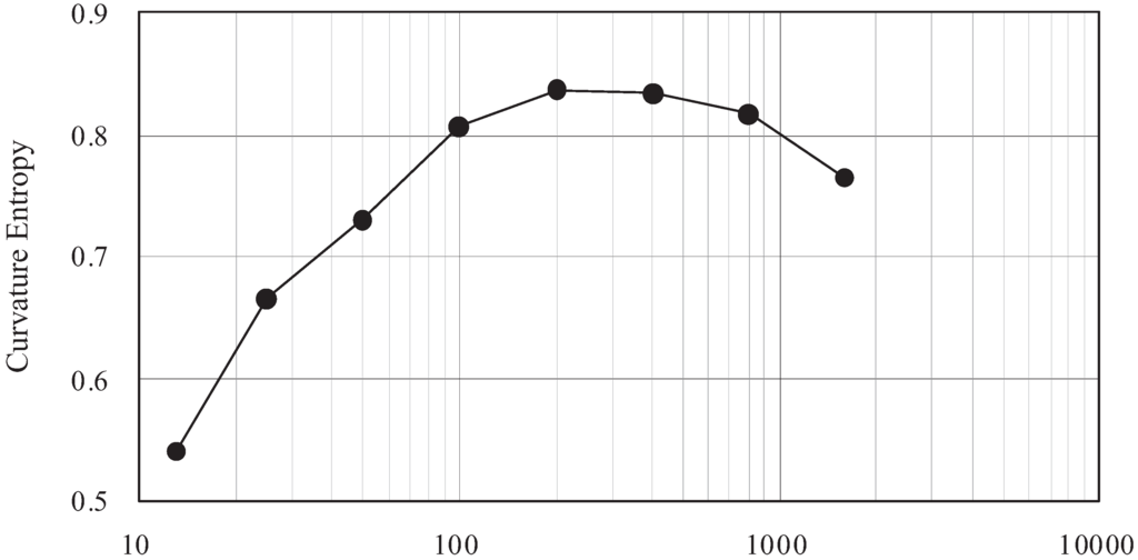where Λ is the number of the source symbols. In information theory, H is called entropy because the equation is identical to that used in thermodynamics. In the present study, a curved line is assumed to be the information source, and the macroscopic shape information is the entropy, expected angle variation, and curvature variation of the curve. These values are described below.