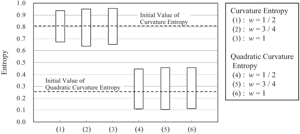 Using the quadratic curvature entropy, Equation (23) is transformed into the following equation: