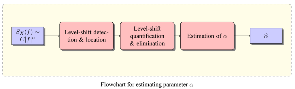 Estimation of the scaling index α in the presence of structural changes in the mean. The estimation involves three steps, level-shift detection & location, level-shift quantification & elimination and estimation of the scaling index in a time series with no structural changes.