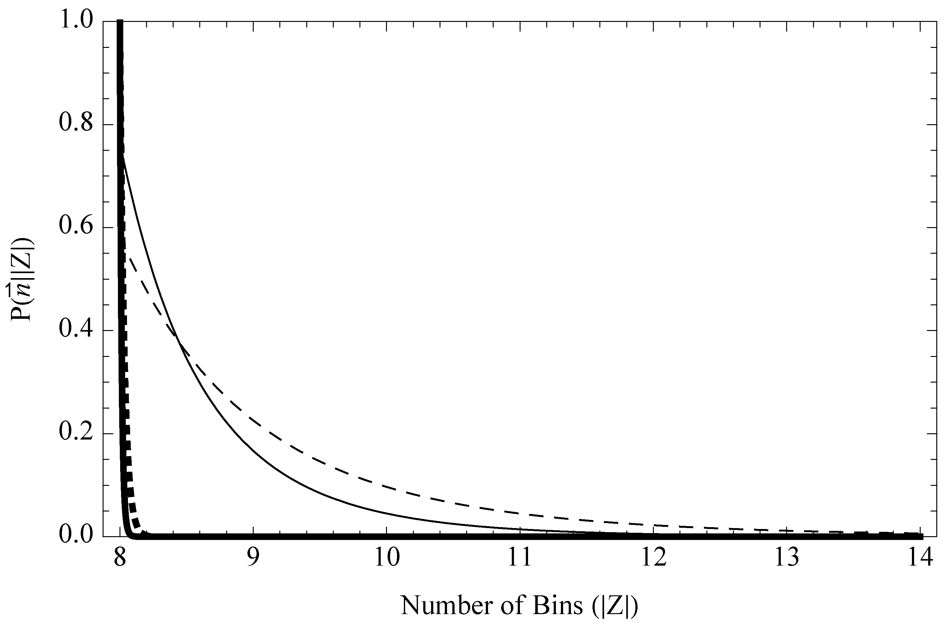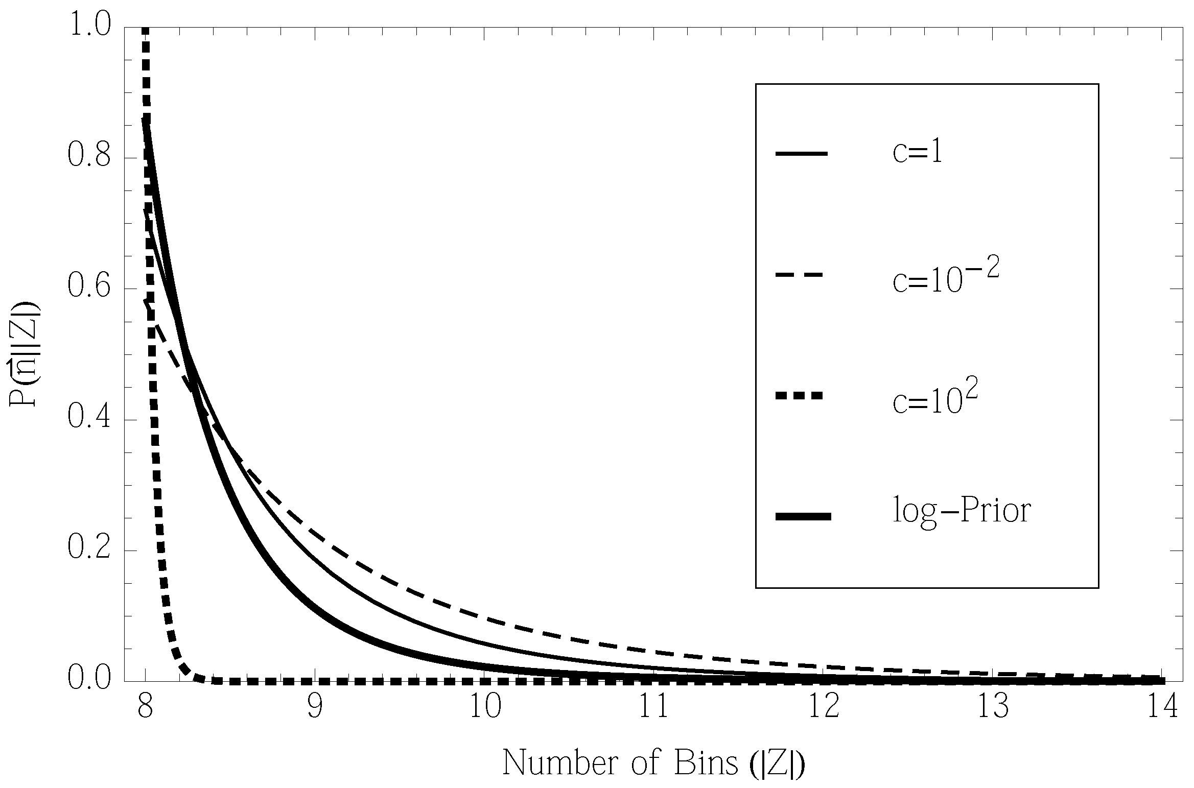 - Intuitively, for that P(c), the likelihood says that a dataset, {125, 125,…}, would imply a relatively high value of c and, therefore, a high probability that ρ is close to uniform over all bins. Given this, it also implies a low value of |Z|, since if there were any more bins than the eight that have counts, we almost definitely would have seen them seen them for almost-uniform ρ. Conversely, for the dataset, {691, …, 6}, the implication is that c must be low where some rare bins trail out, and as a result, there might be a few more bins who had zero counts.