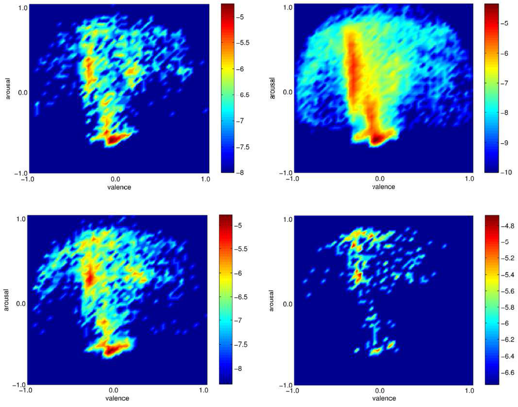 Two nonlinear maps for the arousal and valence are plotted for a few typical values of the “influence fields”.