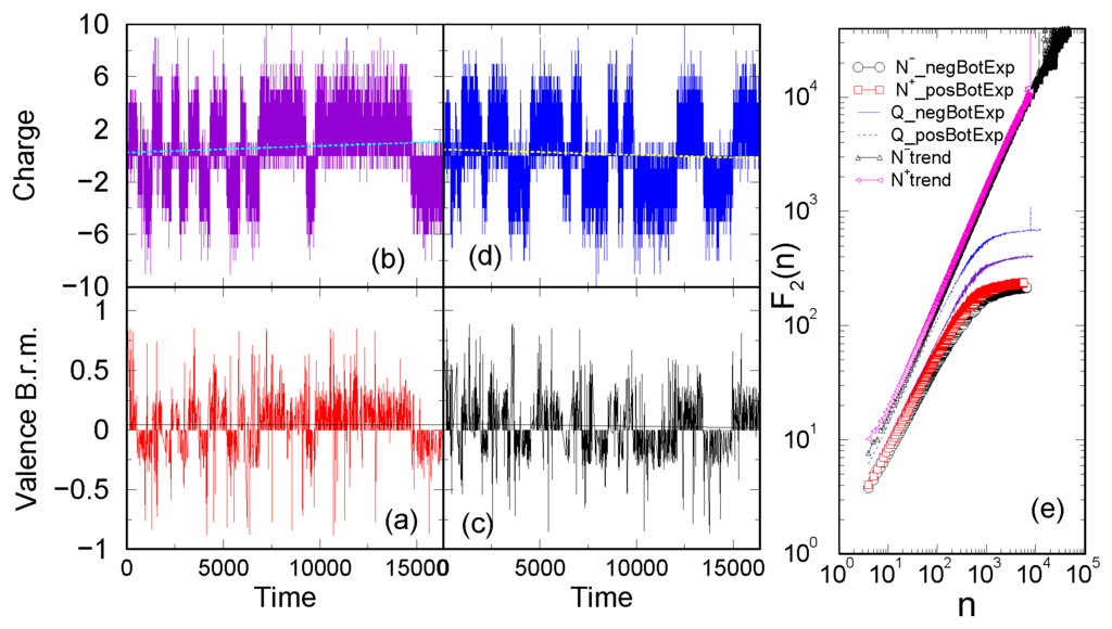 The above performed fractal analysis of the underlying stochastic processes in the empirical data of ddDiggs and Ubuntu chats, complements our earlier study of the empirical data for Blogs [,], Diggs [] and Chats [,,]. In the remaining part of this work in Section 3 and Section 4, we attempt to understand the structure and dynamics observed in these empirical data, by means of theoretical modeling. We use a simple but highly nontrivial agent-based model of the emotional agents interacting on a co-evolving network. Specifically, we aim to unravel the mechanisms behind the observed coexistence in the evolution of communities and the abundance of negative emotions on popular Diggs []. Furthermore, the stability of the chat processes with a well-balanced use of positive and negative emotions, that we witnessed in the empirical data of chat channels [,], will be examined here (by means of the simulations) against the activity of the emotional Bots. A summary of all fractal measures for a compariosn of the simulated and the empirical data will be given in the discussion in Section 5.