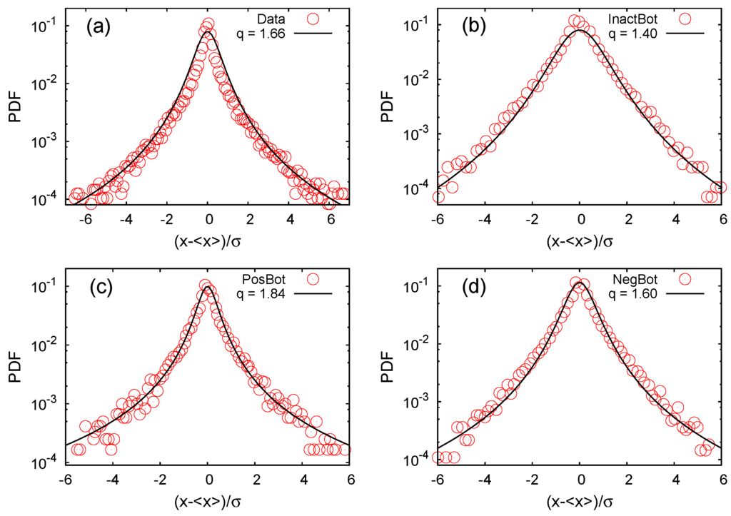 In statistical mechanics, the principle of maximum entropy is originally introduced as a fundamental concept that relates the equilibrium state of a thermodynamical system with the number of its microstates. Over the years, the concept has been standardly accepted in the field of information theory. In recent research, the entropy maximization is often practiced in other areas of science and technology []. For instance, in the case of model inference from the stochastic data, the maximum entropy principle provides coherence and self-consistency of the approach. Furthermore, beyond equilibrium statistical mechanics, the entropy maximization is a framework for understanding the dynamics. Recent progress in statistical physics of complex dynamical systems and its applications in multidisciplinary areas including social dynamics, have pointed out that generalized entropies must be considered, such as Tsallis entropy , [,,,]. The most general form of the entropy was derived in []; the available range of the exponents allows for a full classification of the systems in which generalized entropies apply [,]. One of the prominent features of these systems is the nonlinear rate for the entropy generation or nonextensivity [,,]. In the present work, the concept of generalized entropy is related to the dynamics of emotions, studied in online social systems.