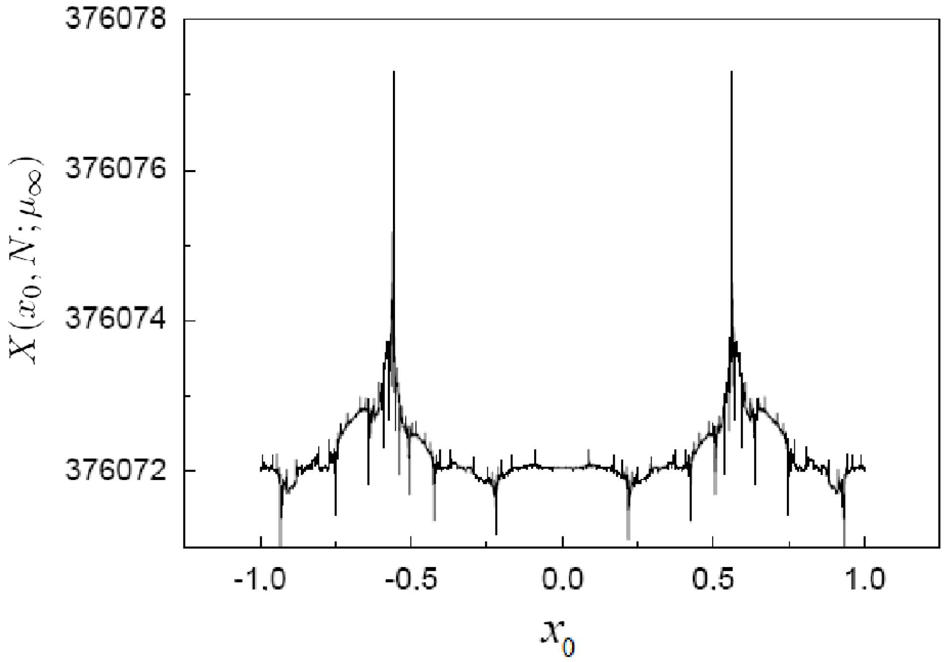 The limit distributions of sums of deterministic variables at the period-doubling transition to chaos in unimodal maps have been studied by making use of the trajectory properties described above [21,22]. Firstly, the sum of positions as they are visited by a single internal trajectory was found to have a multifractal structure imprinted by that of the critical attractor [21,22]. It was shown, analytically and numerically, that the sum of values of positions display discrete scale invariance fixed jointly by Feigenbaum’s universal constant, α, and by the period doublings contained in the number of summands. The stationary distribution associated with this sum has a multifractal support given by the Feigenbaum attractor. Secondly, the sum of subsequent positions generated by an ensemble of uniformly distributed initial conditions in the entire phase space was determined [23]. It was found that this sum acquires features of the repellor preimage structure that dominates the dynamics toward the attractor. The stationary distribution associated with this ensemble has a hierarchical structure with multifractal and discrete scale invariance properties.