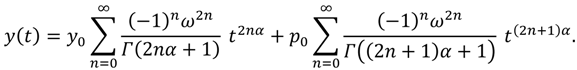 But since {t|t ≥ 0} is the domain of solution, then the values of the coefficients c1 and c3 must be zeros. On the other aspect as well, the substituting of the initial conditions (41) into Equation (42) and into y(t) in Equation (43) gives c0 = 0 and c2 = 0. Therefore, the discretized form of the functions y(t), y(t), and y(t) is obtained. The resulting new form will be as follows: