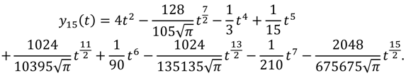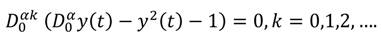 Table 6 shows the 15th-approximate values of y(t) and the residual error function for different values of t and α on 0 ≤ t ≤ 1 in step of 0.2, where the residual error function is defined as