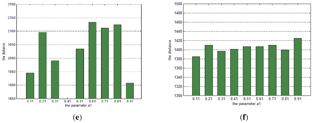 Section 4.2 describes an Insertion Heuristic Algorithm of HPSO proposed in this paper. This section will make some experiments to analyze the parameters of the Insertion Heuristic Algorithm. The Insertion Heuristic Algorithm plays a key role in the process of constructing the vehicle route. It involves four parameters: , ,μ and λ. Among them, and affects the increasing distance after inserting the customer, and affects the delay time after insertion. The six types of data sets have their own characteristics for all factors from the geographical location to the required time windows. In order to unify the results, the number of the customers is 100, ,, is in turn and is 0.890.79...0.09 in turn. Select the value and other parameters for each data set; execute in turn. The result is shown as Figure 2. Based on these results of Figure 2, we can make the following conclusion on the parameter analysis of the Insertion Heuristic Algorithm.