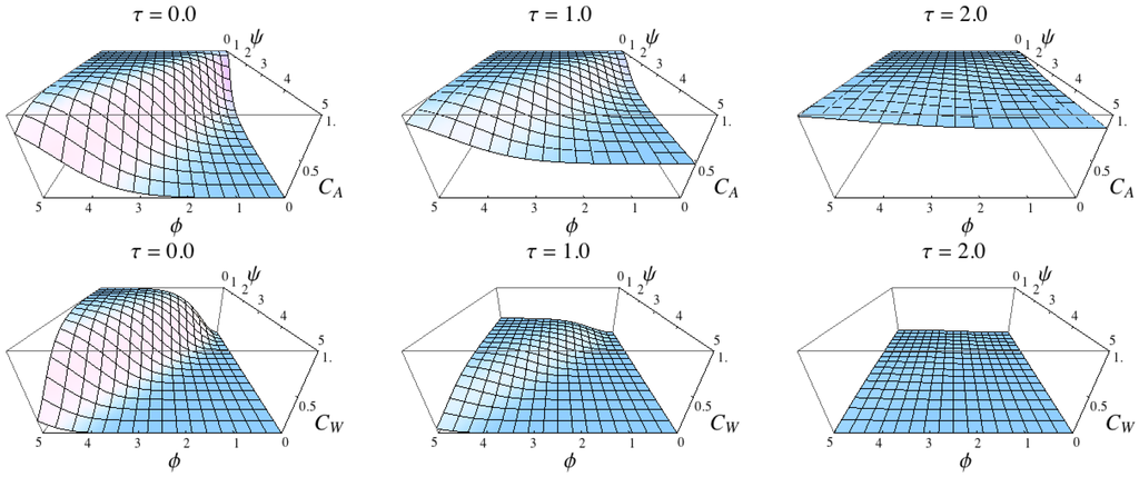 All parameters shown in Equations (36)–(39) were evaluated systematically. The most distinctive results were found for the following values, which is why they were chosen for presentation here: