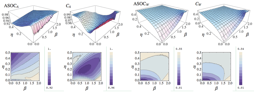Next, this section now applies the four intrinsic measures to the binary model. The results are shown for the variations of the three parameters in Figure 10 and Figure 11.