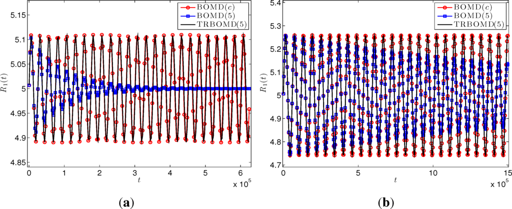 5.1. Numerical Comparison between BOMD and TRBOMD