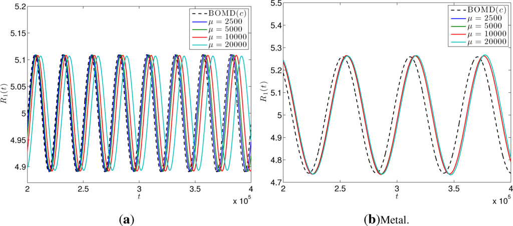When the system has a gap, we can take μ sufficiently small to satisfy the adiabatic separation condition (51). Compare Equation (52) with Equation (50); we see that μ in CPMD plays a similar role as ω−2 in TRBOMD. The accuracy (in the linear regime) for CPMD and TRBOMD is the first order in μ and ω−2, respectively. At the same time, as taking a small μ or large ω increases the stiffness of the equation, the computational cost is proportional to μ−1 and ω2, respectively.