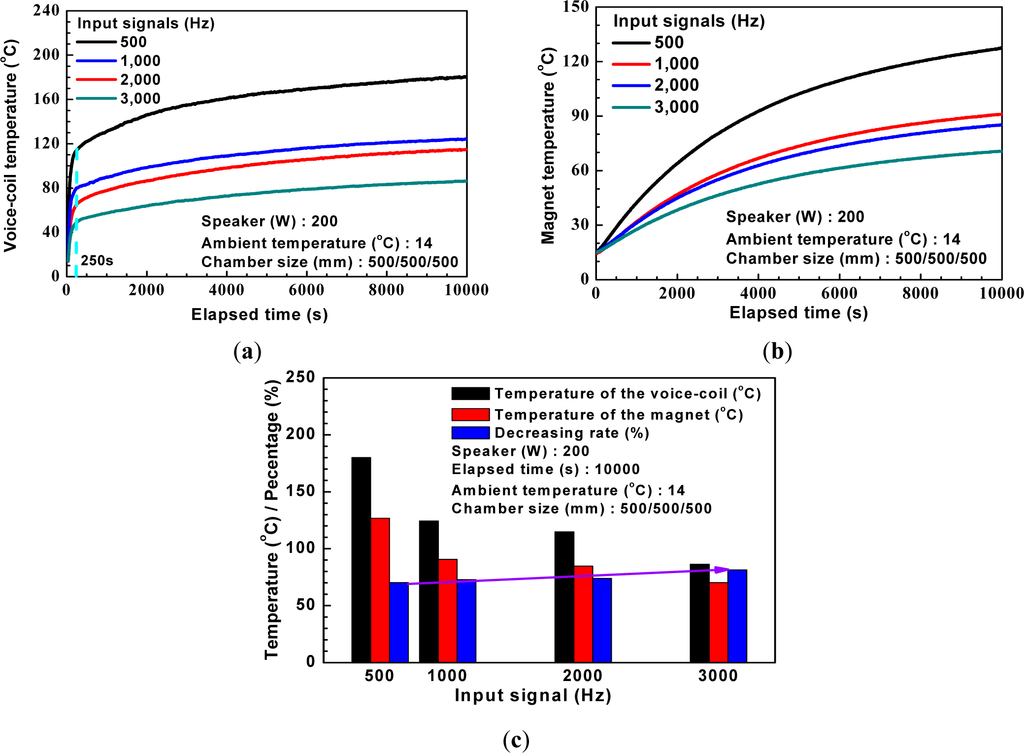 - Lee, M.Y.; Kim, H.J.; Lee, W.Y. Numerical analysis on temperature characteristics of the voice-coil for woofer speaker using ferrofluid. J. Korean Magn. Soc 2013, 23, 166–172. [Google Scholar]